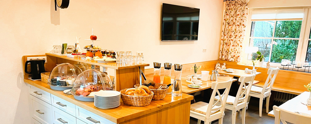 the guesthouse with a familiar and personal atmosphere, cozy guest rooms in a modern country house style with shower, flat screen TV and Wifi as well as a delicious breakfast buffet with regional food in the morning.