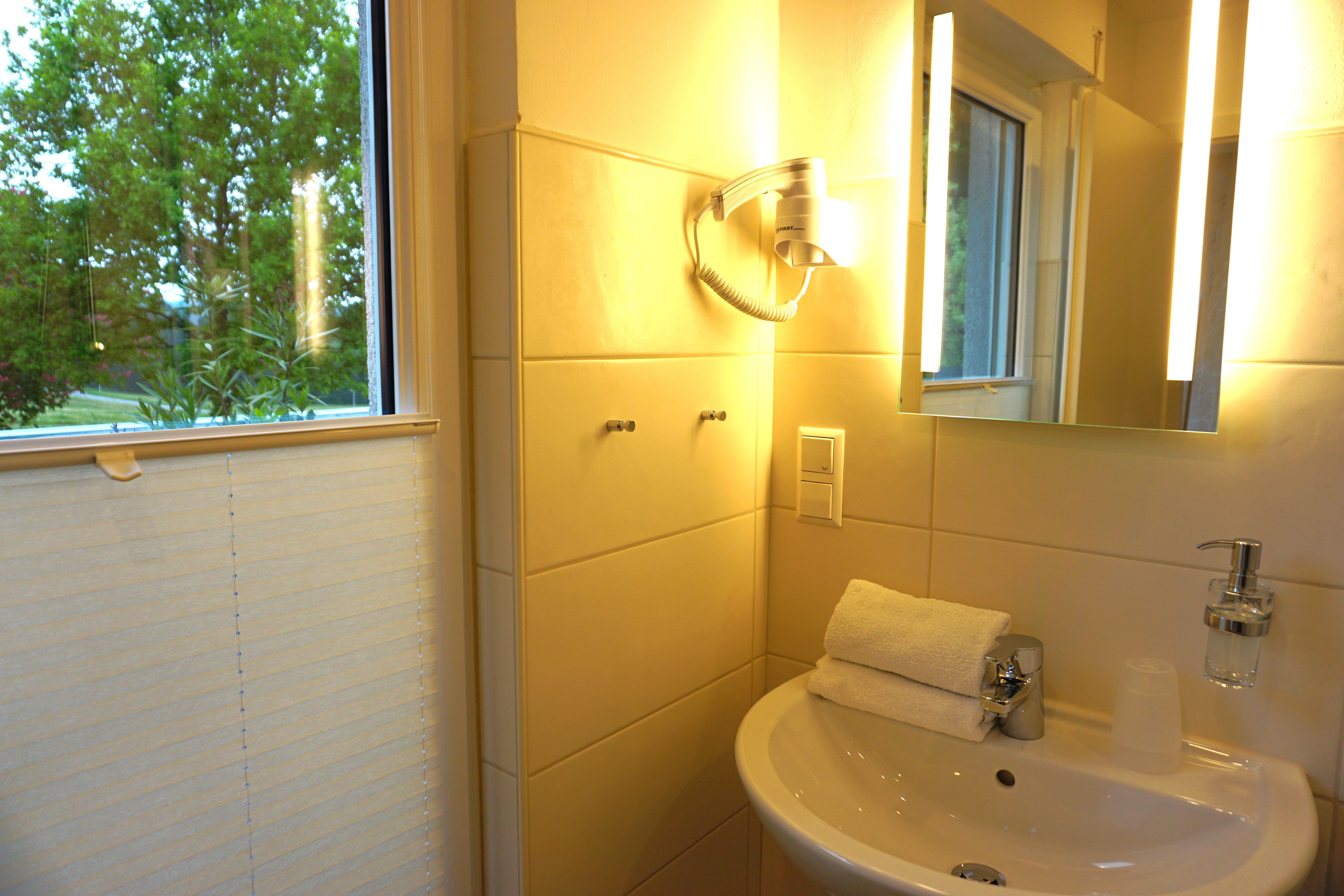 ... is on the ground floor with a view to the garden and is equipped with a single bed (1.00 x 2.00 m), satellite TV, free WiFi, shower and hairdryer. Bed linen, towels, soap and shower gel/ shampoo are part of the equipment.